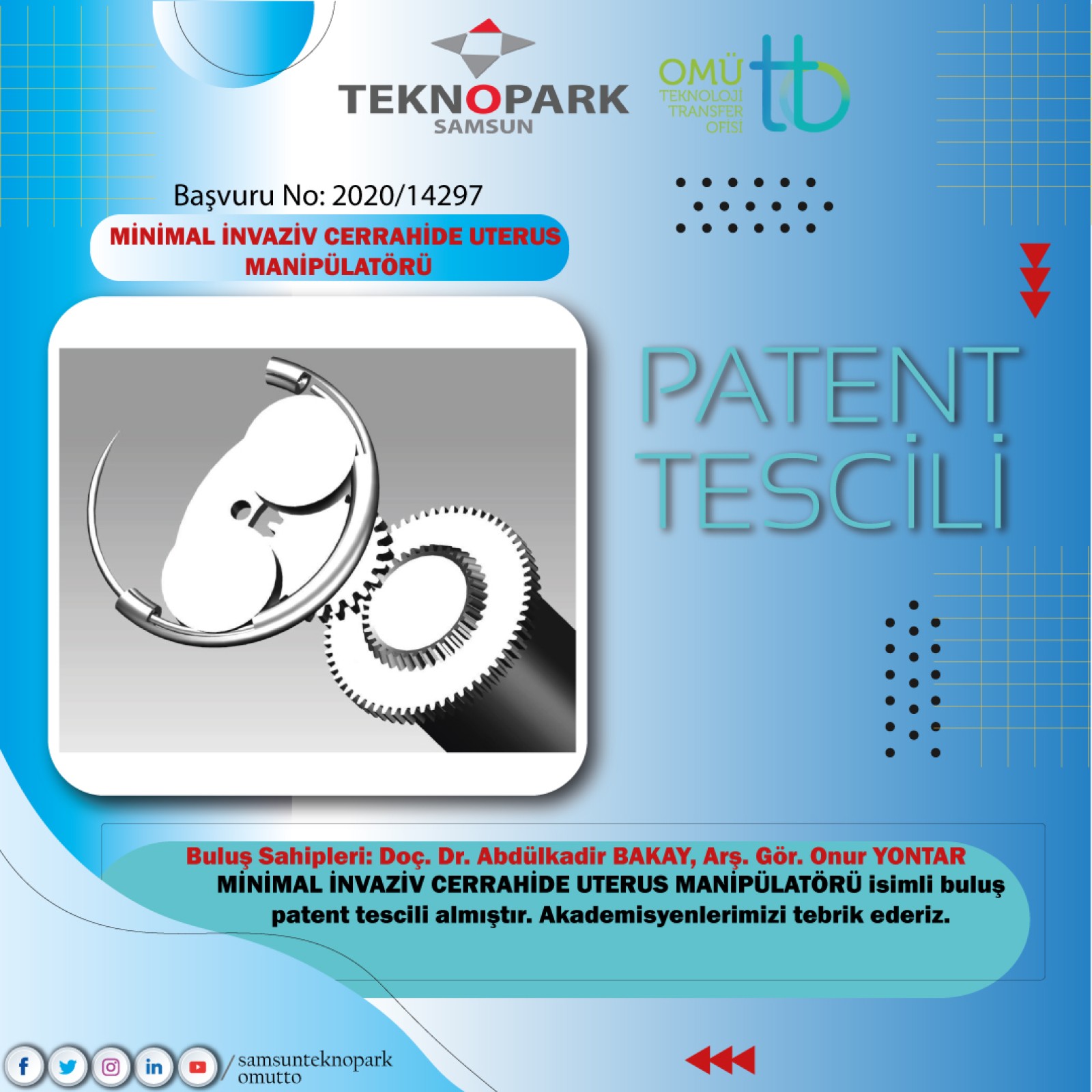 MİNİMAL İNVAZİV CERRAHİDE UTERUS MANİPÜLATÖRÜ isimli buluş patent tescili almıştır. Akademisyenlerimizi tebrik ederiz.