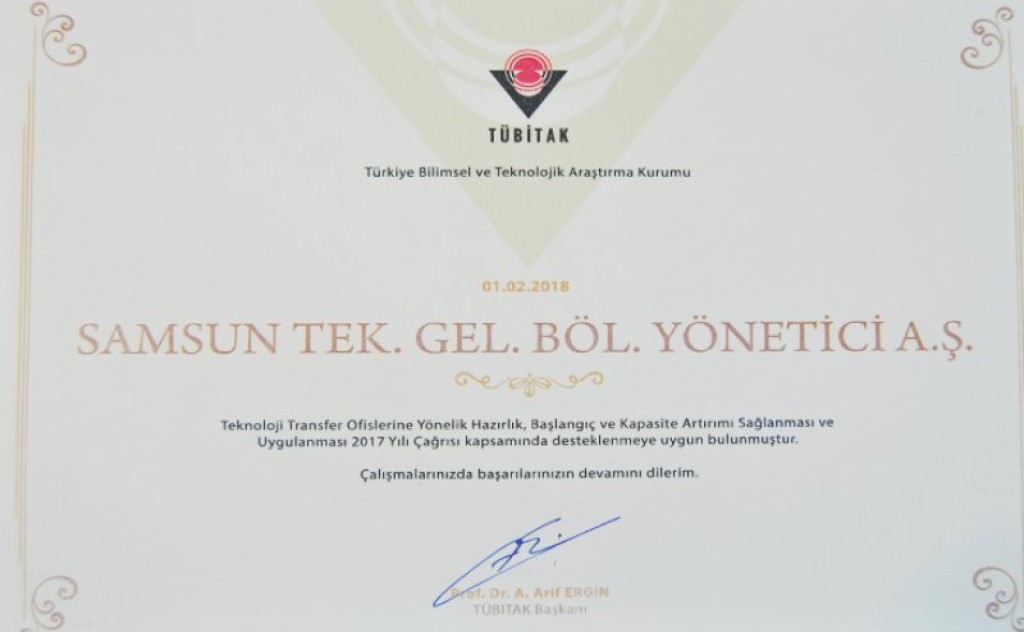 Ondokuz Mayıs Üniversitesi Teknoloji Transfer Ofisi(OMÜ-TTO), Türkiye Bilimsel ve Teknolojik Araştırma Kurumu(TÜBİTAK)’ndan başarı sertifikası almaya hak kazandı.